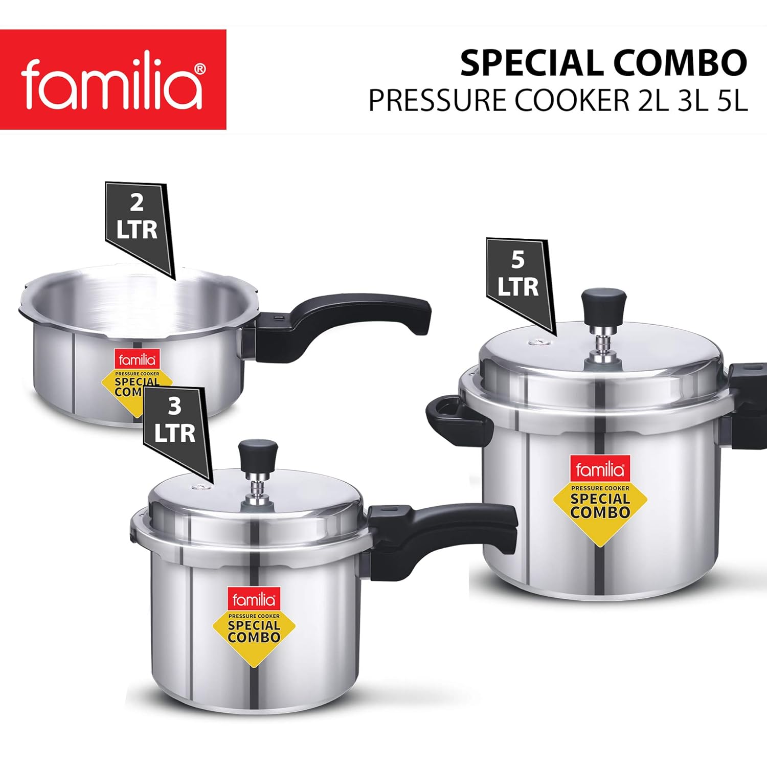 Familia FAL-235 Induction Base Aluminium Family Pressure Cooker Combo With Outer Lid (2 & 3 & 5 Litre)