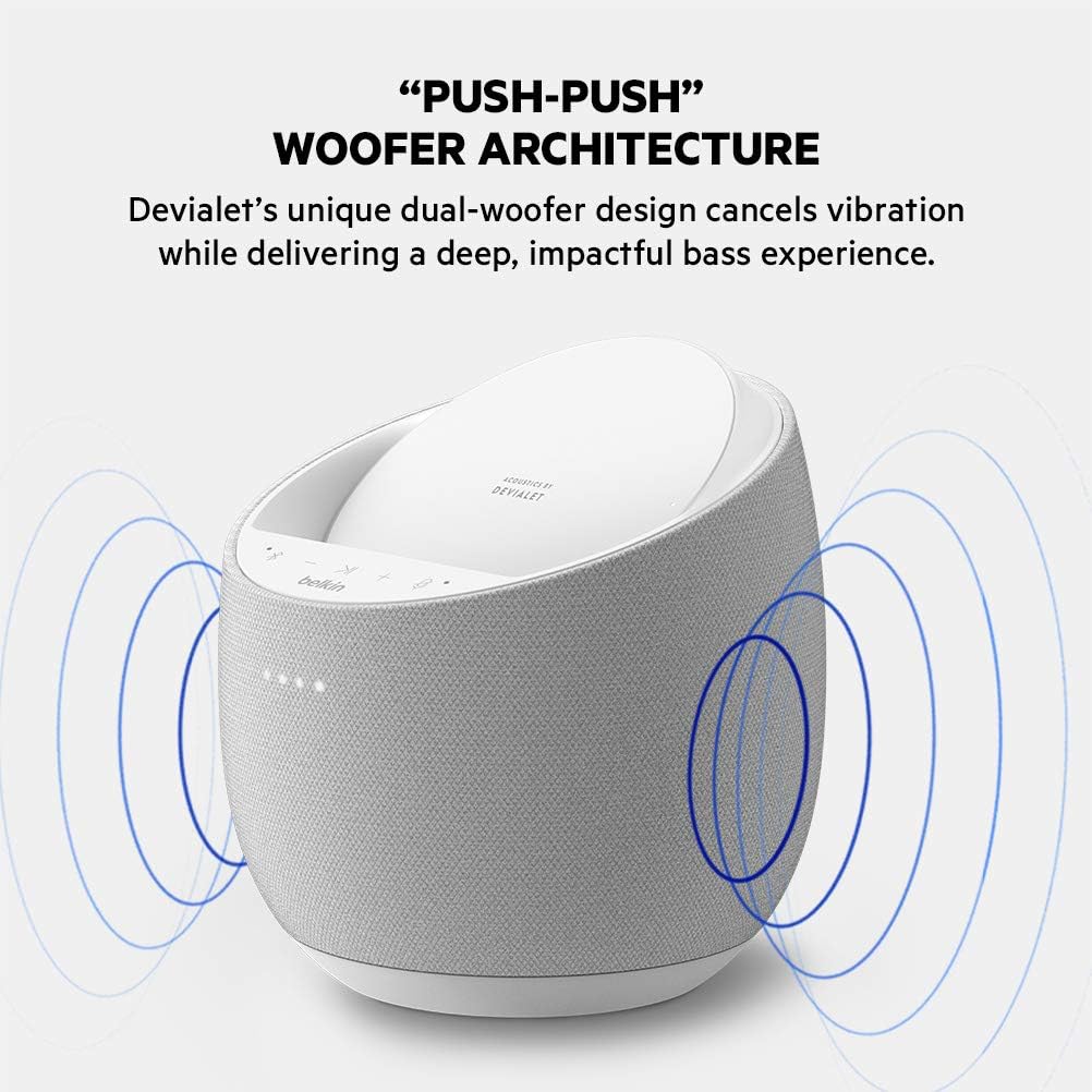 Belkin SoundForm Elite Hi-Fi Smart Speaker + Wireless Charger (Voice-Controlled Bluetooth Speaker, Google Assistant Speaker) Sound Technology by Devialet (White)
