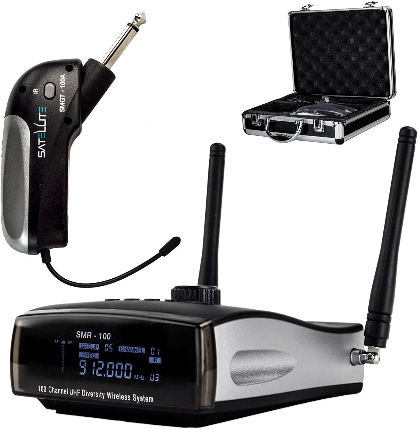 Nady Satellite SMGT-100A | 100-Channel True Diversity Wireless Instrument System for Guitar, bass, Violin - Portable & AA Batteries Operation - Includes Metal Carrying case. 30° Angled