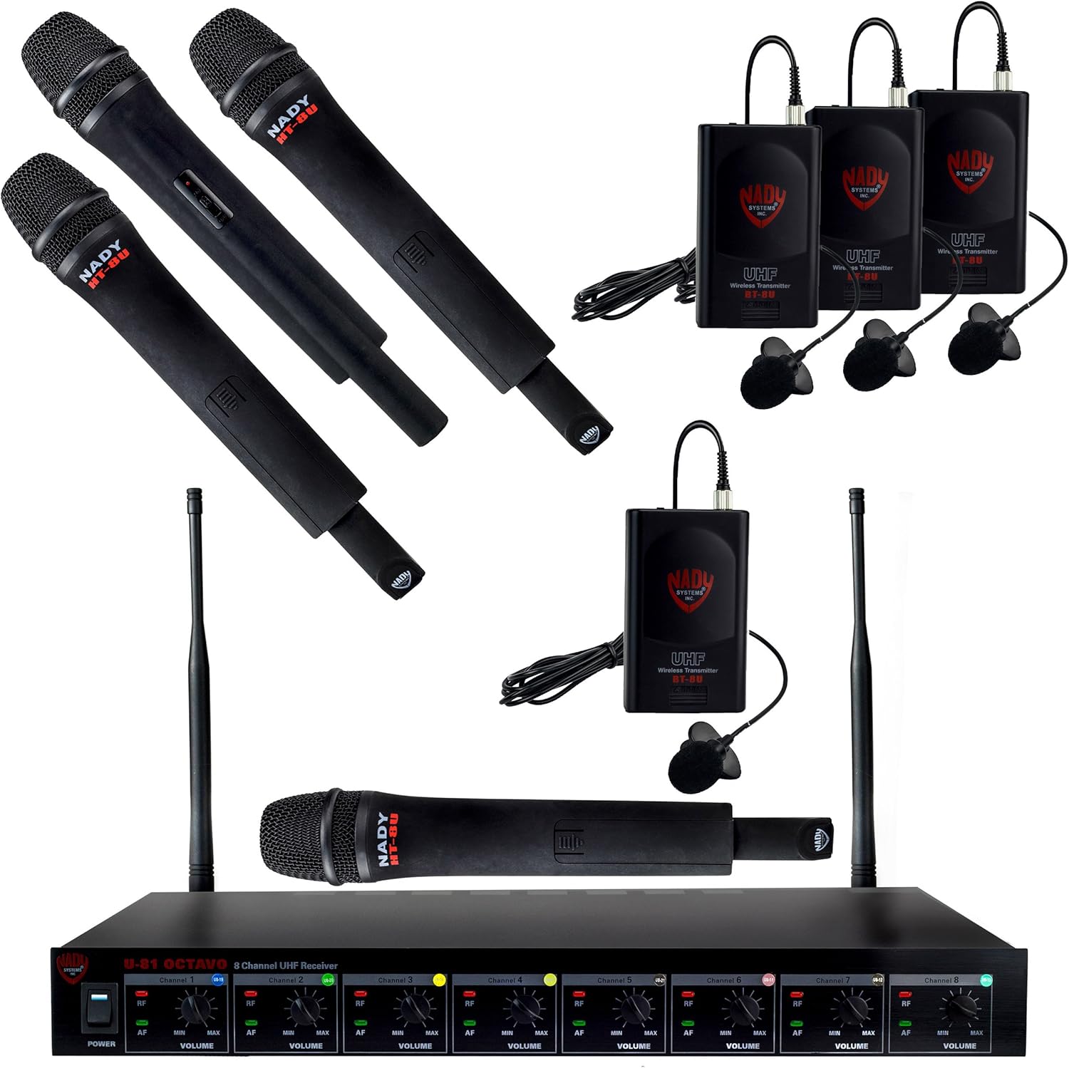 Nady U-81 Octavo HT-LT – Four Wireless Handheld Microphones and Four bodypacks with lavalier Microphones – Easy Set up – UHF – 8 XLR & 1 Mixed ¼ outputs – 8 Individual Volume Controls