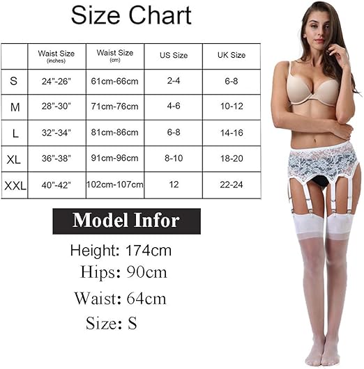 sofsy Lace Garter Belt/Suspender Belt with Clips for Women's Stockings (Stockings Sold Separately)