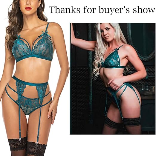 Avidlove Women Lingerie Set Lace Teddy Strap Babydoll Bodysuit with Garter Belts