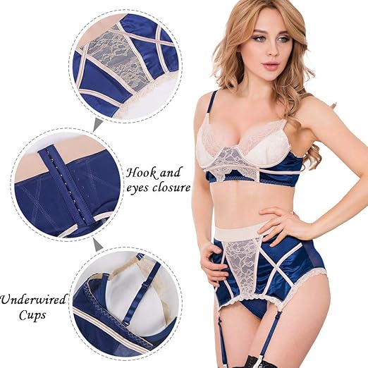 ohyeah High Waist Lingerie for Women Plus Size Garter Belt Lace Bra Set High Waist Garter Belt Underwear
